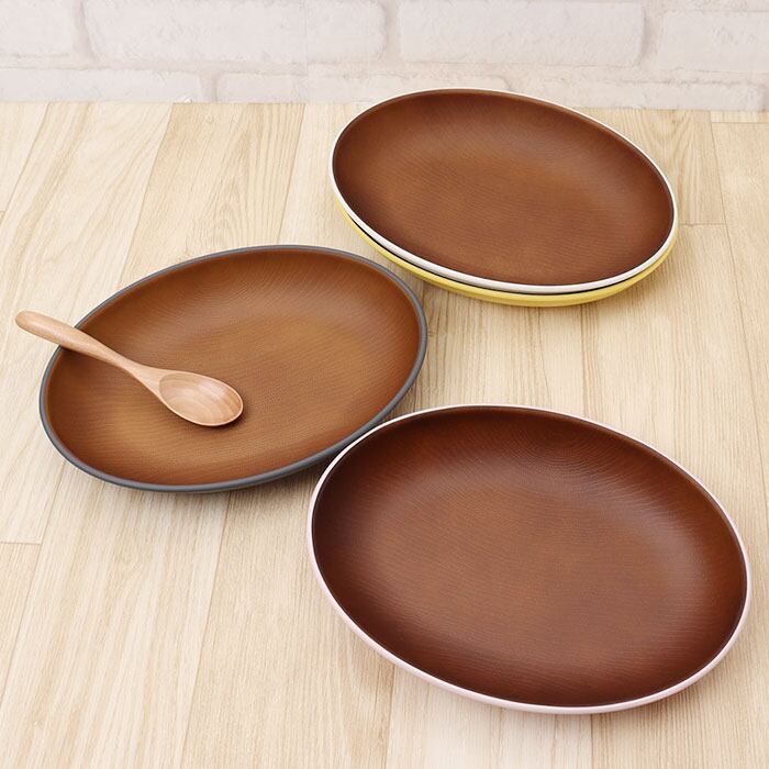 ・優しい木目の温もりをポップなカラーで縁取った「isso ecco 木目オーバルプレート」が新登場!