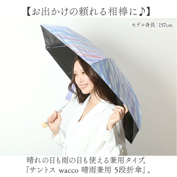 ・晴れの日も雨の日も使える兼用タイプ。「サントス wacco 晴雨兼用 5段折傘」。