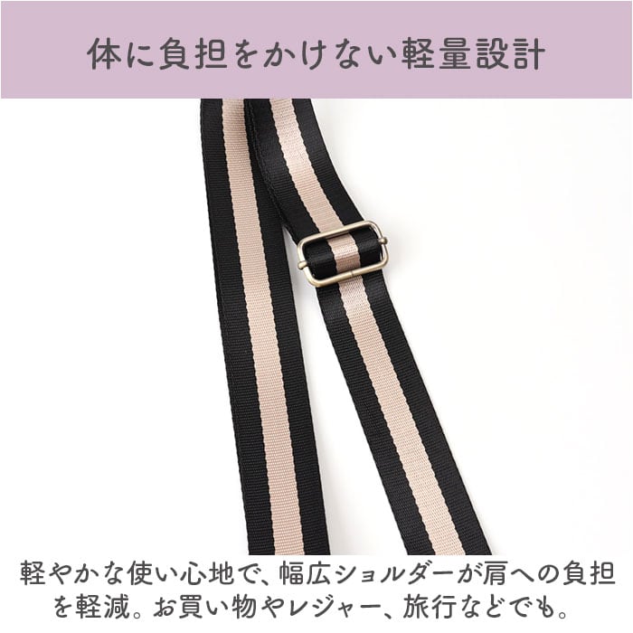 ・軽やかな使い心地で、幅広ショルダーが肩への負担を軽減。お買い物やレジャー、旅行などでも。