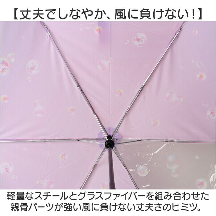 ・傘生地の1コマが透明窓になっているので、前が見やすく薄暗い雨の日の通学時も安心・安全♪