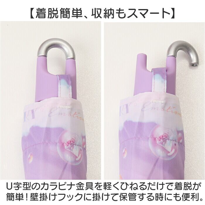 50cm 子ども折りたたみ傘 カラビナ手元 透明窓1面