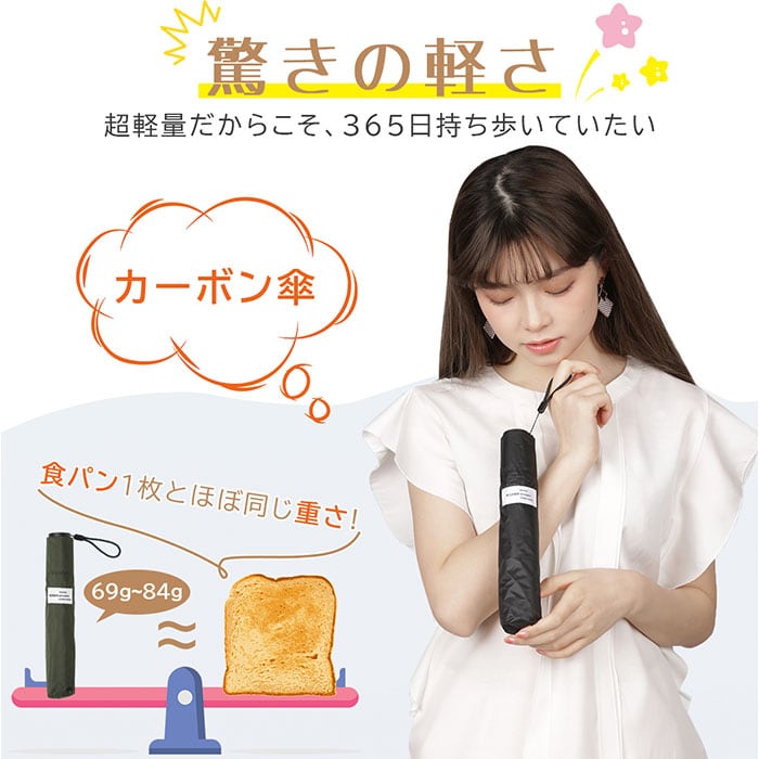 ・天気の変化から守る!「pocket 超軽量カーボン雨傘」親骨50cmサイズ。