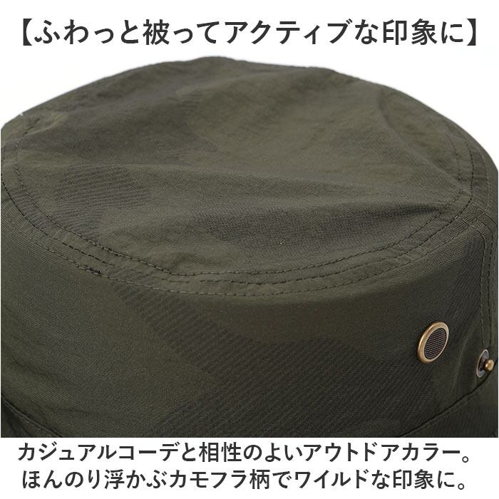 ・タウンユースにも映えるシンプルなシルエット♪「撥水CAMOポケッタブルアドベンチャーハット」