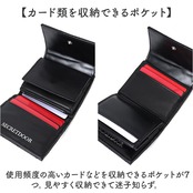 ・内側:スナップボタン式小銭入れ×1、お札入れ×1、カードポケット×5、フリーポケット×2