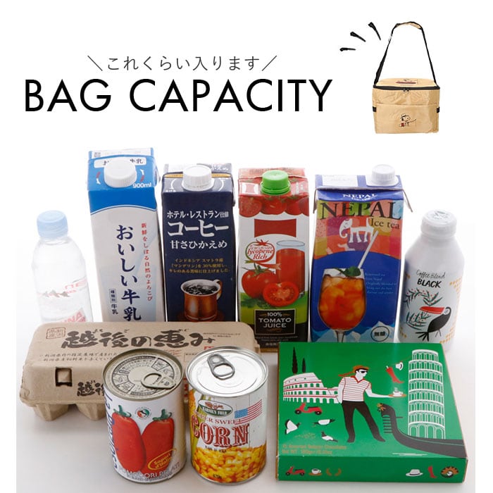 ・端正なスクエア型のバッグ内側に、1リットルの牛乳パックが8本収納できる約20Lの大容量設計!