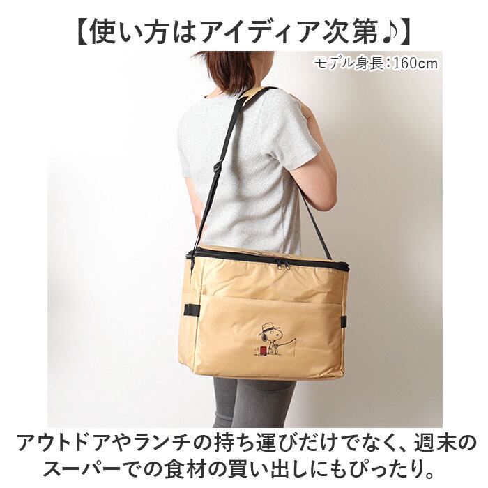 クーラーバッグ スヌーピー 通販 保冷バッグ 折りたたみ 保冷カバン ソフトクーラーボックス 保冷 バッグ ボックス型 キャラクター 大容量 ショルダー 肩掛け ファスナー ベージュ ピクニック 海 プール アウトドア かわいい ピーナッツ フレンズヒル