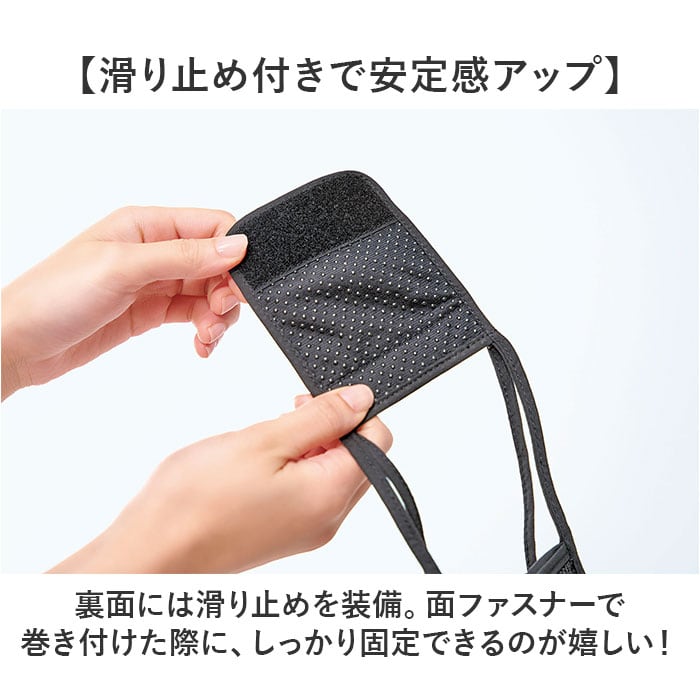 ・裏面には滑り止めを装備。面ファスナーで巻き付けた際に、しっかり固定できるのが嬉しい!