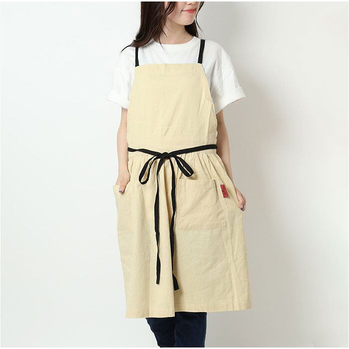 Kukugoto ククゴト エプロン ギャザー 通販 綿混エプロン ギャザーエプソン 前掛け 前掛 キャミワンピエプロン 綿麻 ミディ ポケット リボン 無地 作業用 掃除用 美容師 シンプル カジュアル かわいい 可愛い キッチン おしゃれ オシャレ 上品