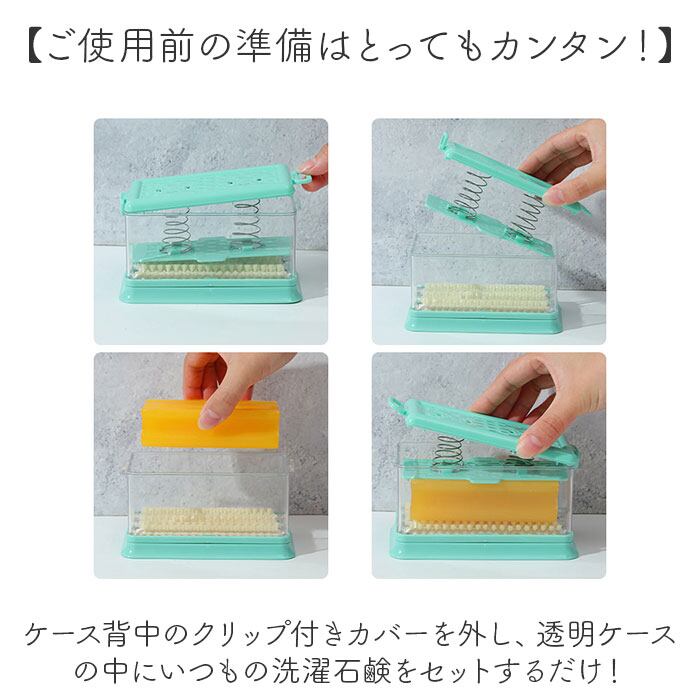 ・ケース背中のクリップ付きカバーを外し、透明ケースの中にいつもの洗濯石鹸をセットするだけ!