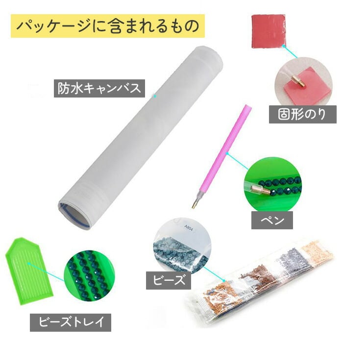 [付属品]のり x 1個、ペン x 1本、ビーズ x 1セット、トレイ x 1個