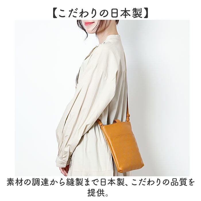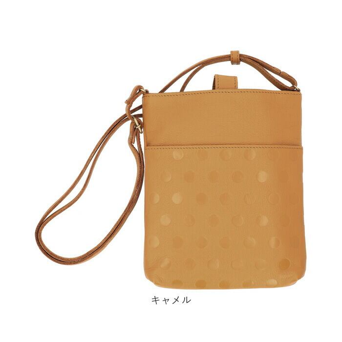 ・ふんわりと柔らかいカウレザーにドット柄を施した、スマホショルダーバッグ