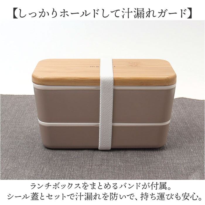 ・ランチボックスをまとめるバンドが付属。シール蓋とセットで汁漏れを防いで、持ち運びも安心。