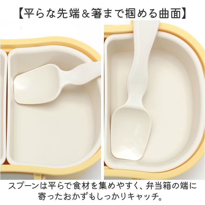 ・スプーンは平らで食材を集めやすく、弁当箱の端に寄ったおかずもしっかりキャッチ。