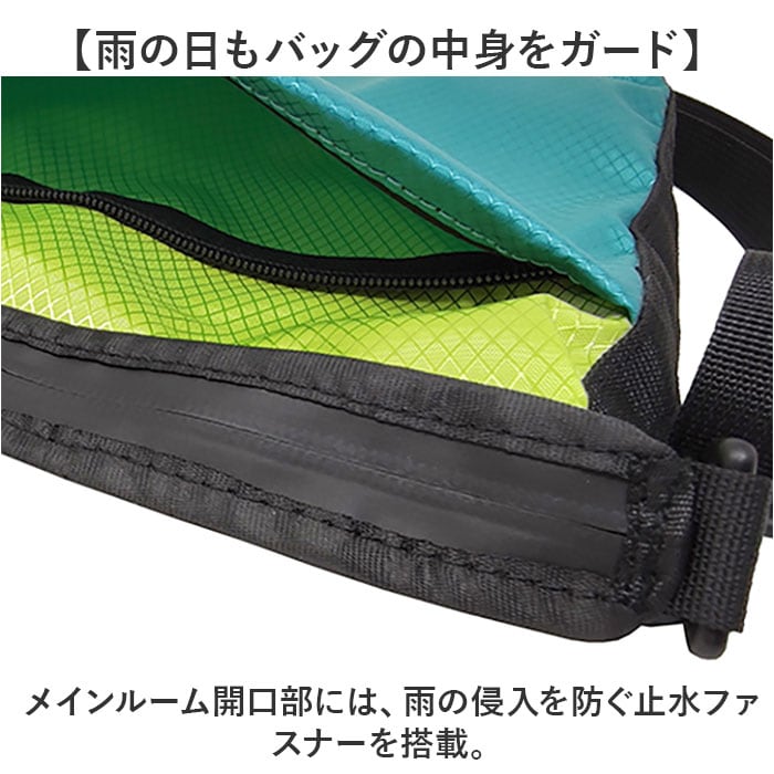 ・メインルーム開口部には、雨の侵入を防ぐ止水ファスナーを搭載。