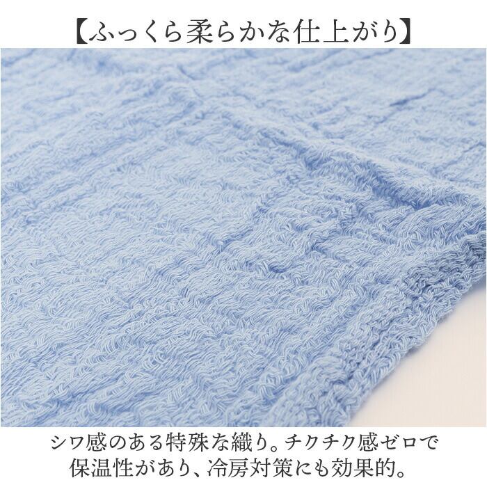 ・シワ感のある特殊な織り。チクチク感ゼロで保温性があり、冷房対策にも効果的。