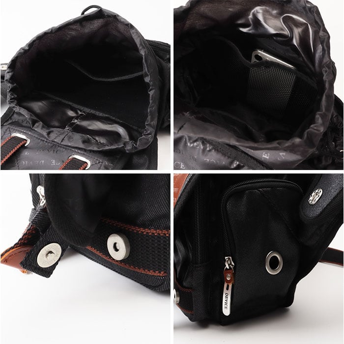 ・メインの開口部はフラップと巾着の二重構造◎小物が飛び出さないつくりで安心◎