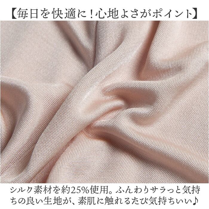 ・シルク素材を約25%使用。ふんわりサラっと気持ちの良い生地が、素肌に触れるたび気持ちいい♪
