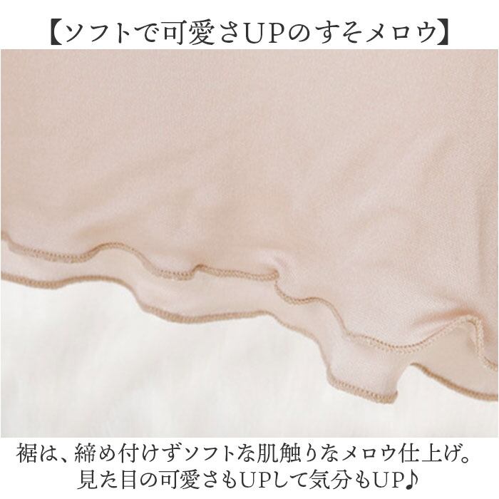 ・裾は、締め付けずソフトな肌触りなメロウ仕上げ。見た目の可愛さもUPして気分もUP♪