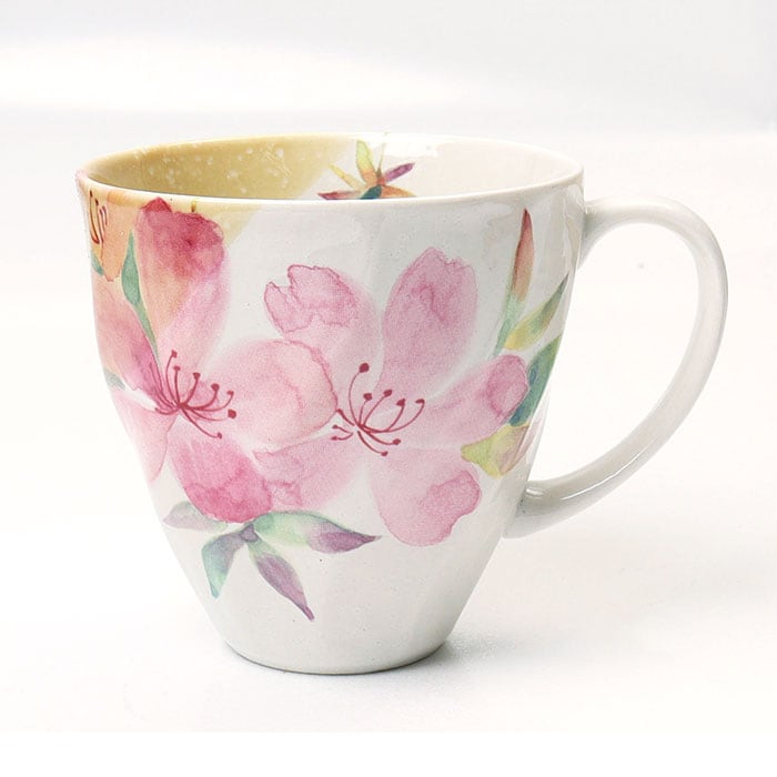 ・程よい存在感のあるフラワーデザイン。風合い漂う、岐阜県で伝統的な美濃焼マグ。