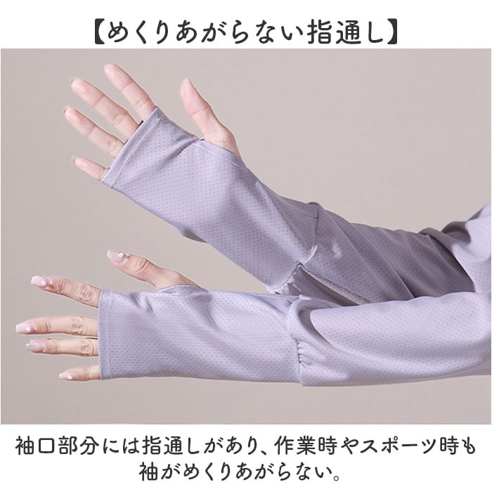 ・長袖仕様なので腕全体をしっかり日差しからカバー。手の甲までしっかり覆えるのもポイント。