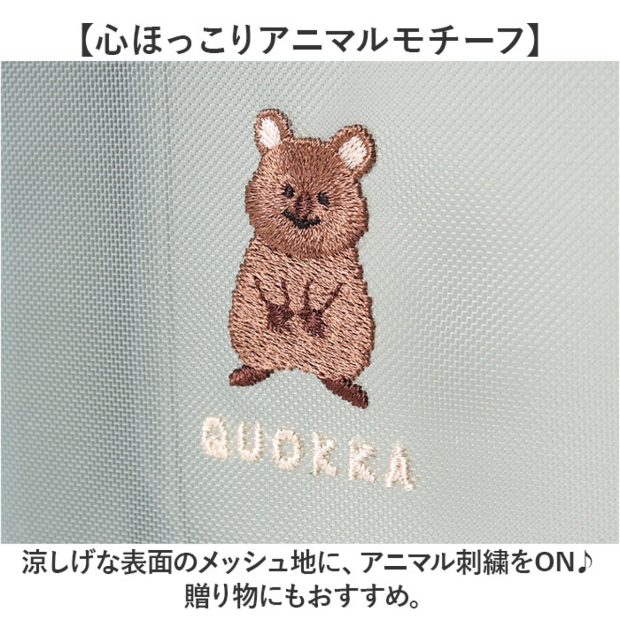 ・涼しげな表面のメッシュ地に、アニマル刺繍をON♪贈り物にもおすすめ。