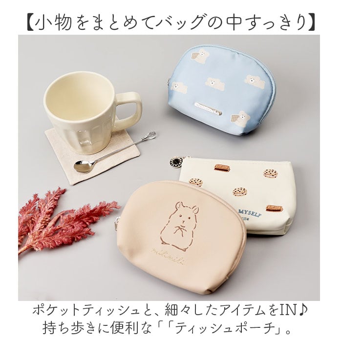 ・ポケットティッシュと、細々したアイテムをIN♪持ち歩きに便利な「「ティッシュポーチ」。