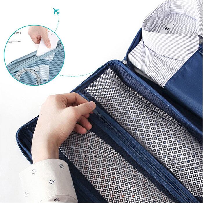 ・ダブルファスナーで大きく開閉する薄型コンパクトなケースに、最大3枚のYシャツを収納可能。