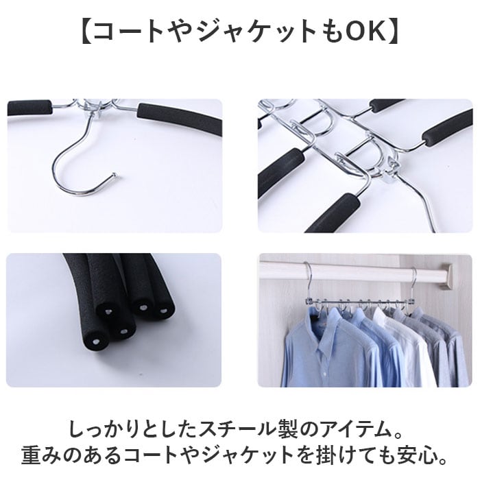 ・ハンガーの1つ1つにスポンジを取り付け洋服が滑り落ちない仕組み。