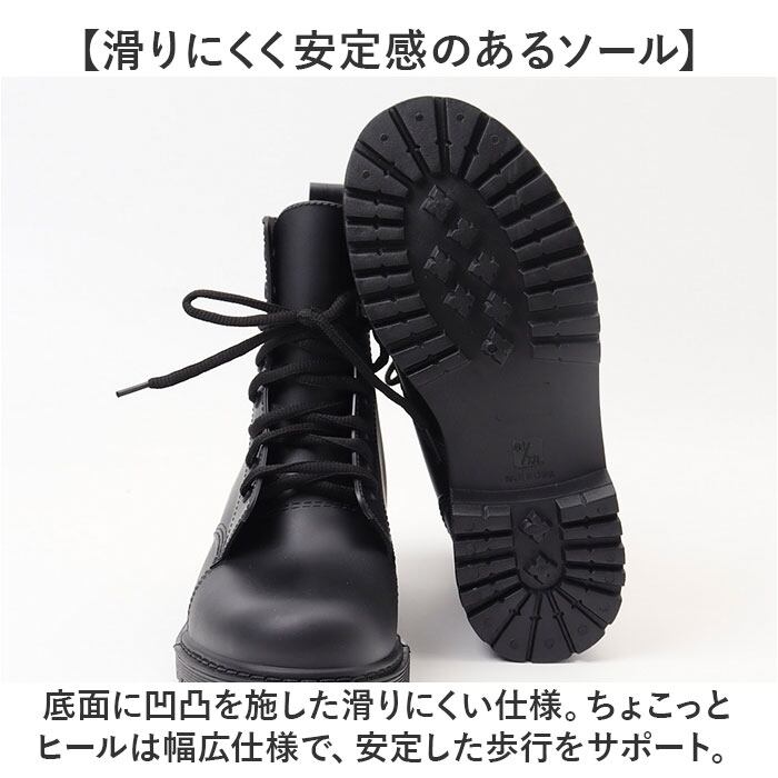 ・底面に凹凸を施した滑りにくい仕様。ちょこっとヒールは幅広仕様で、安定した歩行をサポート。
