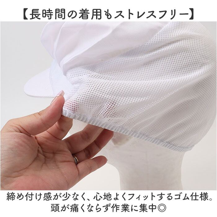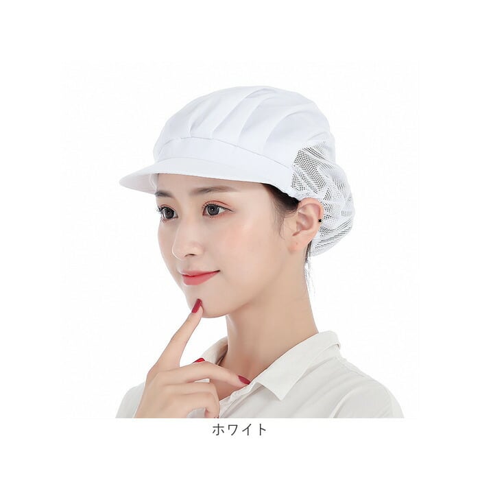 ・髪をまとめてすっぽりIN。食品工場やレストランなどにおいて重要な役割を果たすキャップ。