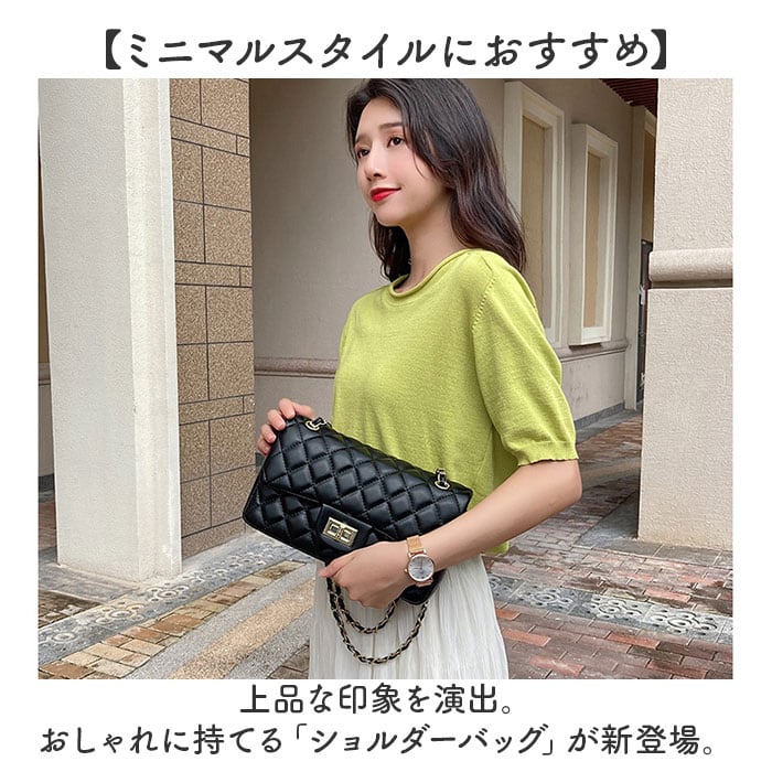 ・ふっくらとしたキルティングに、チェーンショルダー。大人な雰囲気漂う仕上がり。