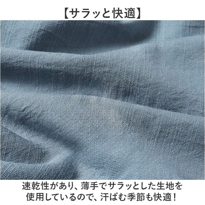 ・速乾性があり、薄手でサラッとした生地を使用しているので、汗ばむ季節も快適!