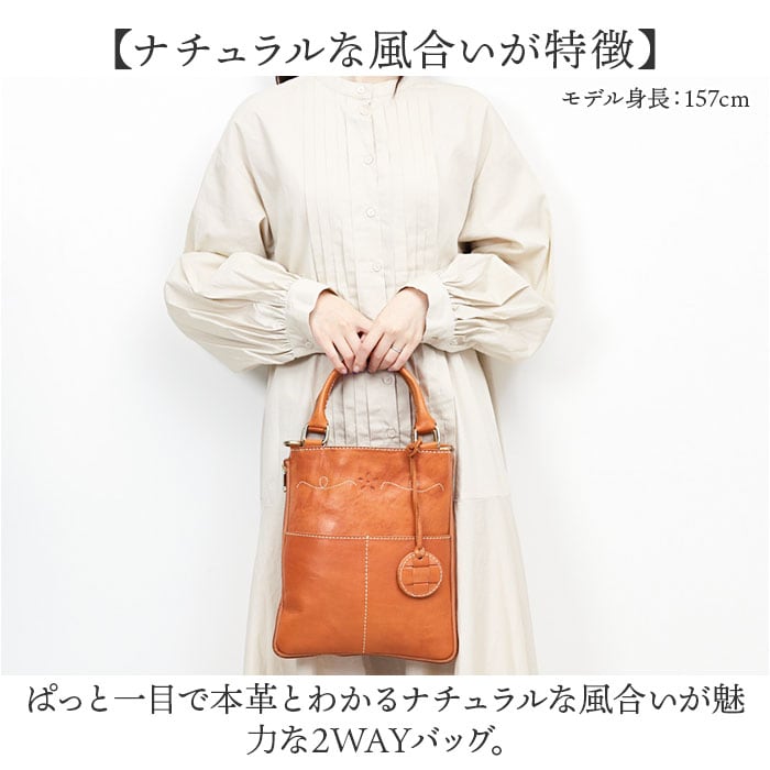 ・ぱっと一目で本革とわかるナチュラルな風合いが魅力な2WAYバッグ。