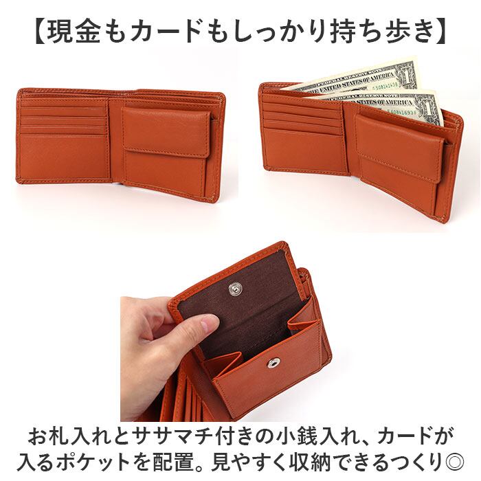 ・お札入れとササマチ付きの小銭入れ、カードが入るポケットを配置。見やすく収納できるつくり◎
