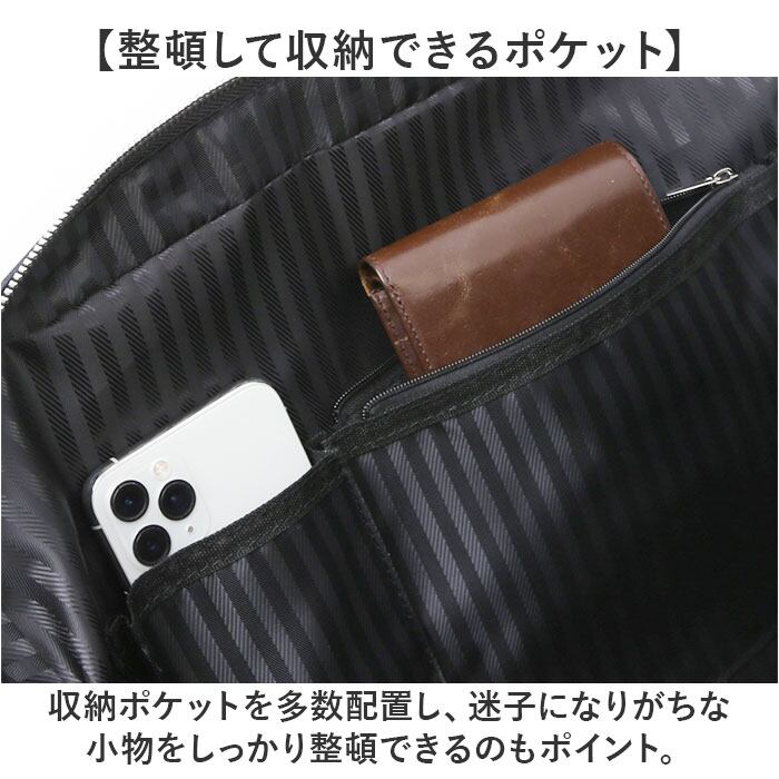 ・バッグの内部には光沢感のあるストライプ生地を採用!高級感をプラスしたデザイン。
