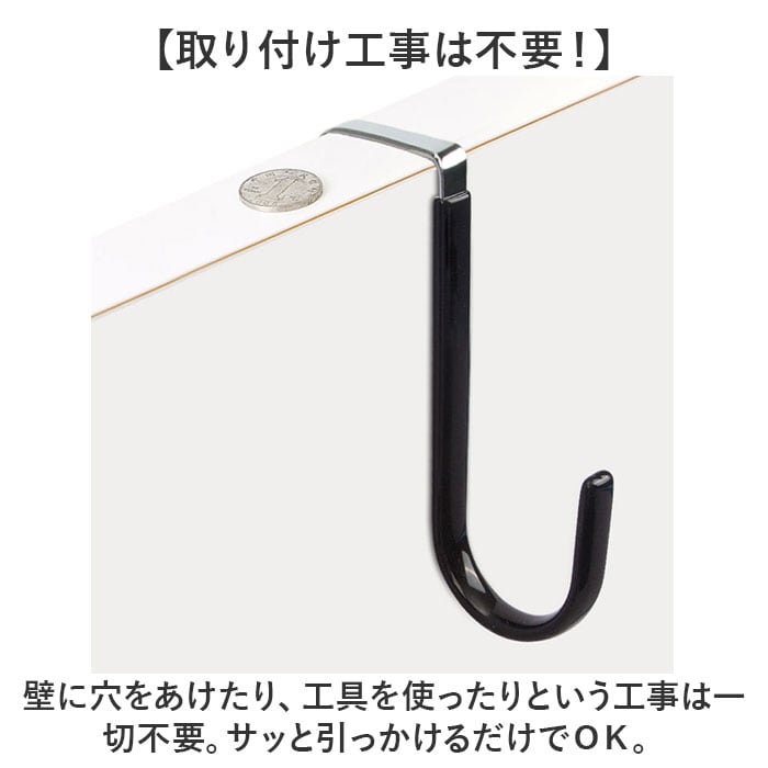 ・壁に穴をあけたり、工具を使ったりという工事は一切不要。サッと引っかけるだけでOK。