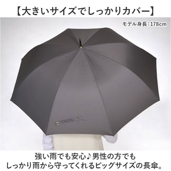 ・強い雨でも安心♪男性の方でもしっかり雨から守ってくれるビッグサイズの長傘。