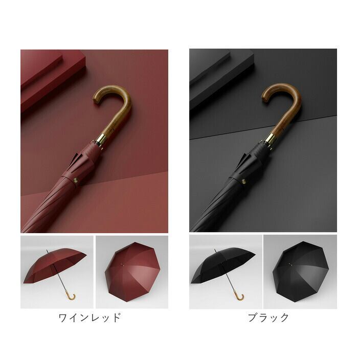 長傘 8本骨 収納カバー付き 紳士傘 直径120cm 木製ハンドル