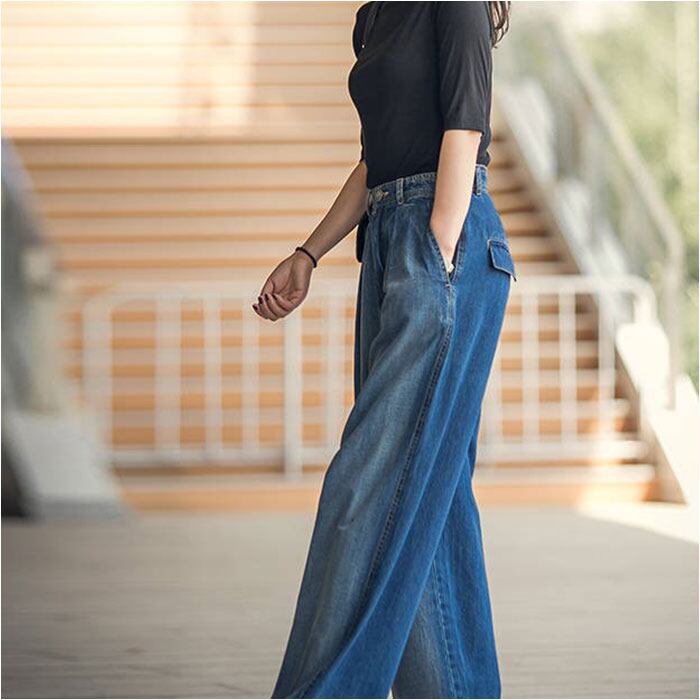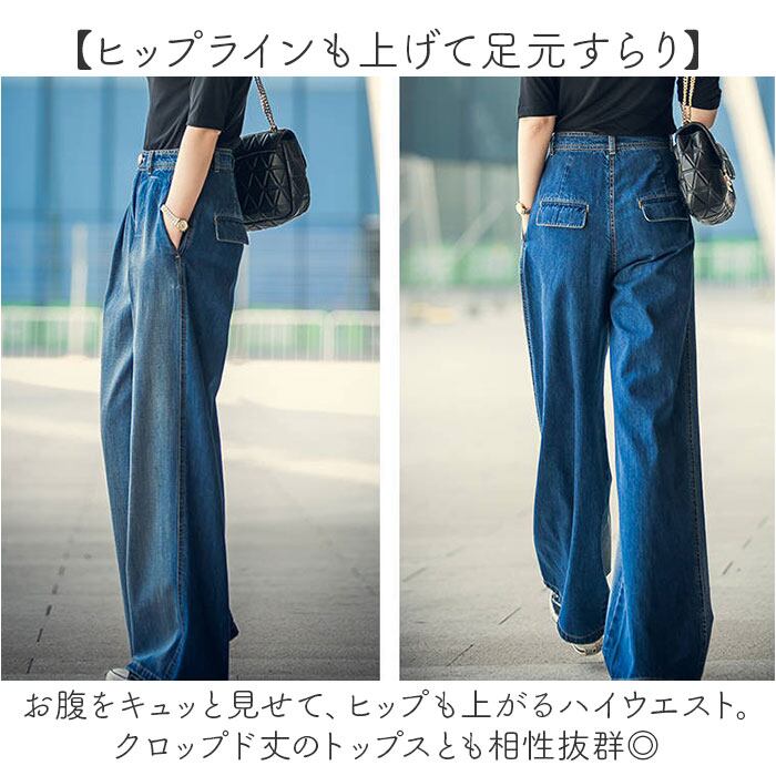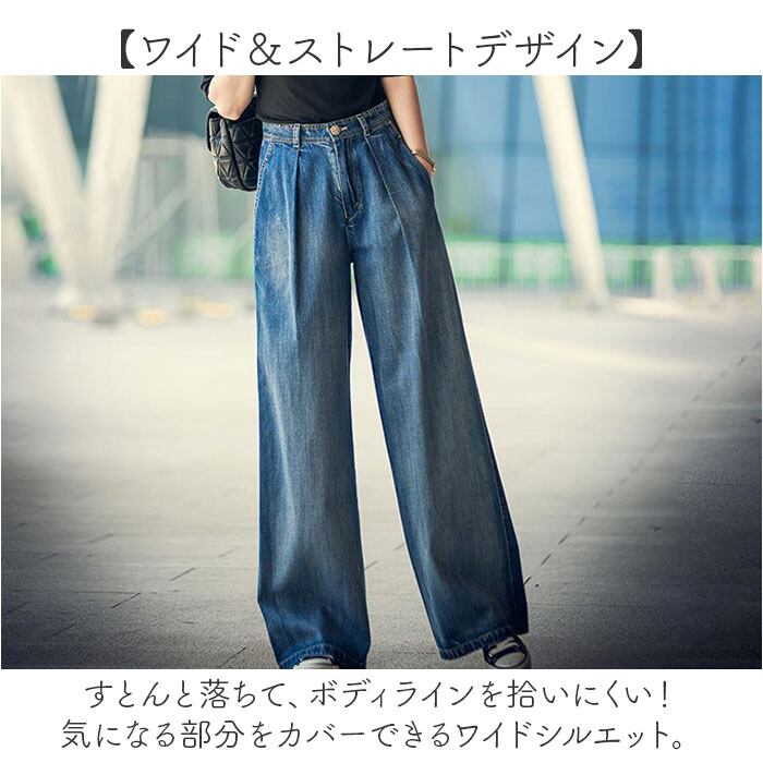ワイドパンツ レディース ワイド デニム 通販 デニムパンツ ジーンズ ガウチョパンツ ジーパン パンツ 長ズボン ロングパンツ ハイウエスト ズボン ストレート ガウチョ ゆったり 体型カバー 股上深め ポケット オールシーズン ボトムス 春 夏 秋 冬