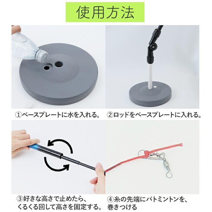 ・スタンドにロッドを立てシャトルを吊り下げるだけですぐに使用可能。