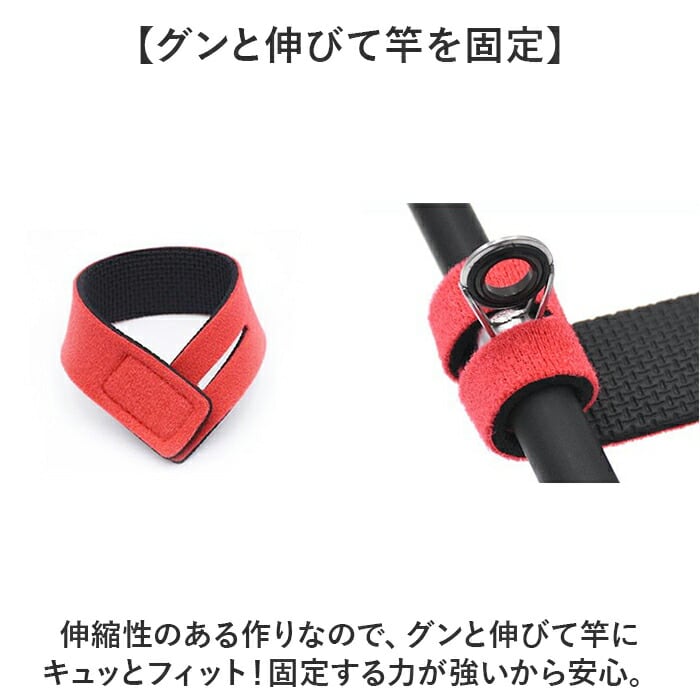 ・伸縮性のあるバンドでしっかり固定。「釣竿バンド 8本セット」が登場。