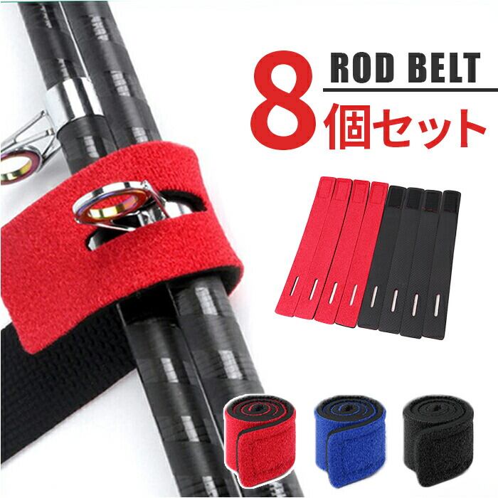 ロッドベルト 8本セット 通販 釣竿バンド ロッドバンド 釣り竿 釣り 結びバンド 釣り具 保護ベルト 固定用 収納用 面ファスナー スリット付き つりざお 落下防止 竿まとめる 巻く 海 川 キャンプ アウトドア ルアーロッド 釣り竿用 フィッシング