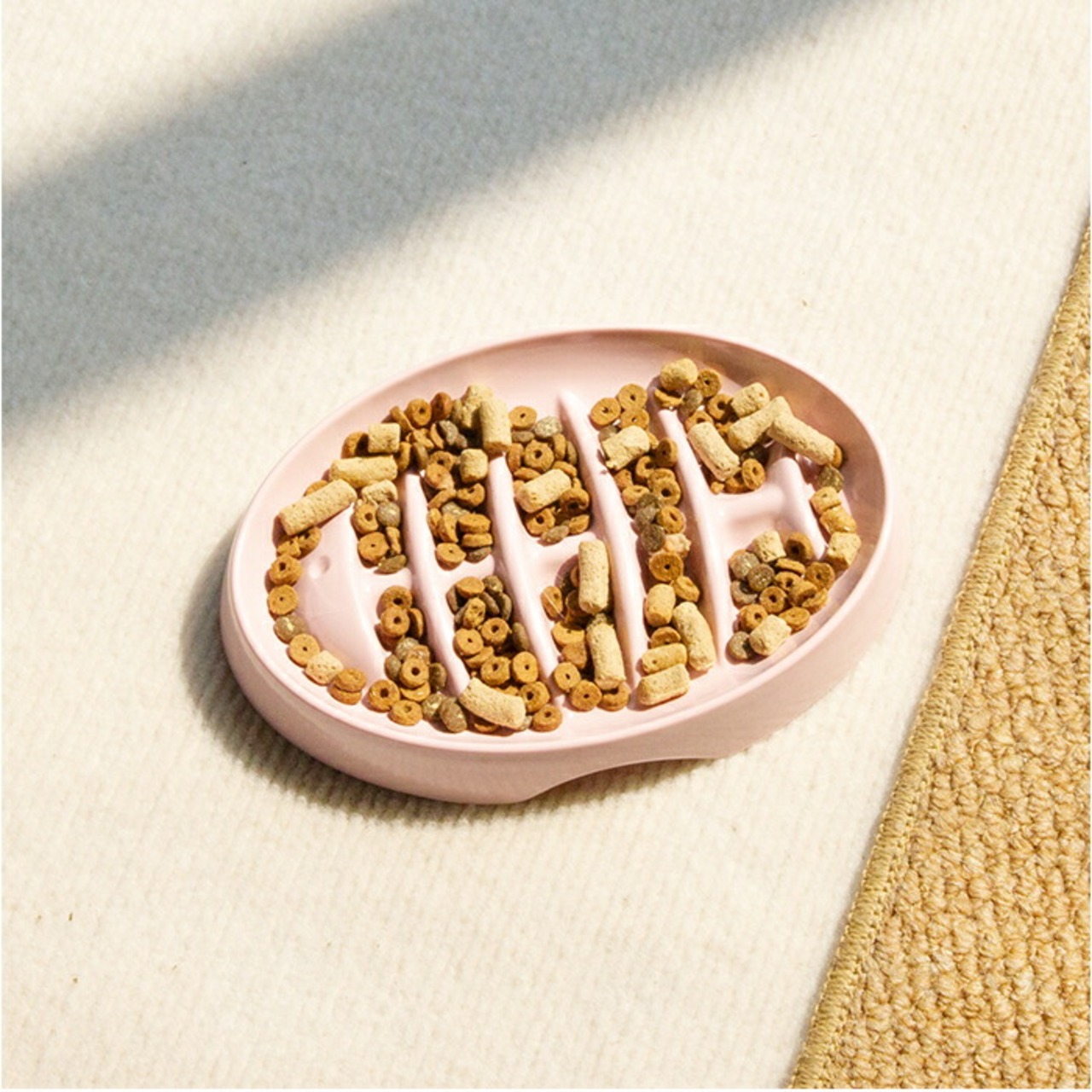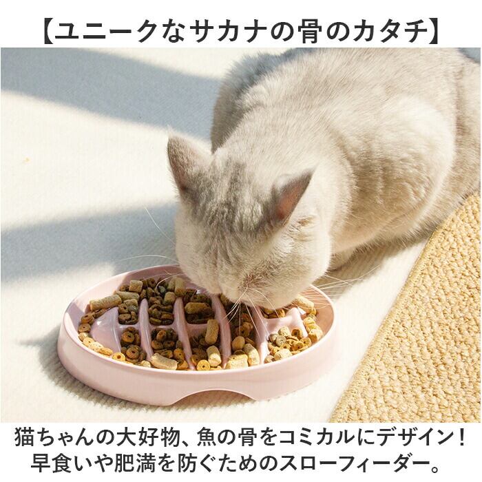 ・猫ちゃんの大好物、魚の骨をコミカルにデザイン!早食いや肥満を防ぐためのスローフィーダー。