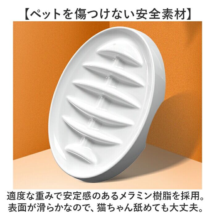 ・適度な重みで安定感のあるメラミン樹脂を採用。表面が滑らかなので、猫ちゃん舐めても大丈夫。