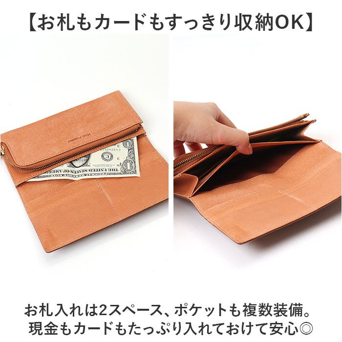 ・お札入れは2スペース、ポケットも複数装備。現金もカードもたっぷり入れておけて安心◎