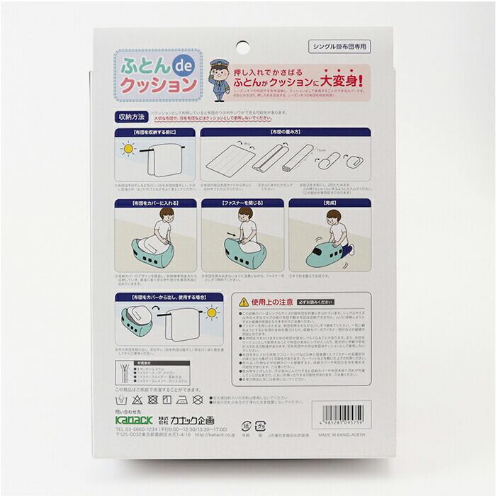 (※)布団のつぶれやシワができる可能性があるため、大切な布団や羽毛布団などはクッションとして使用しないでください。