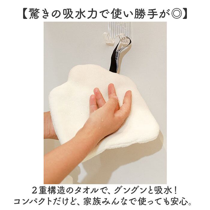 2重構造のタオルで、グングンと吸水!コンパクトだけど、家族みんなで使っても安心。