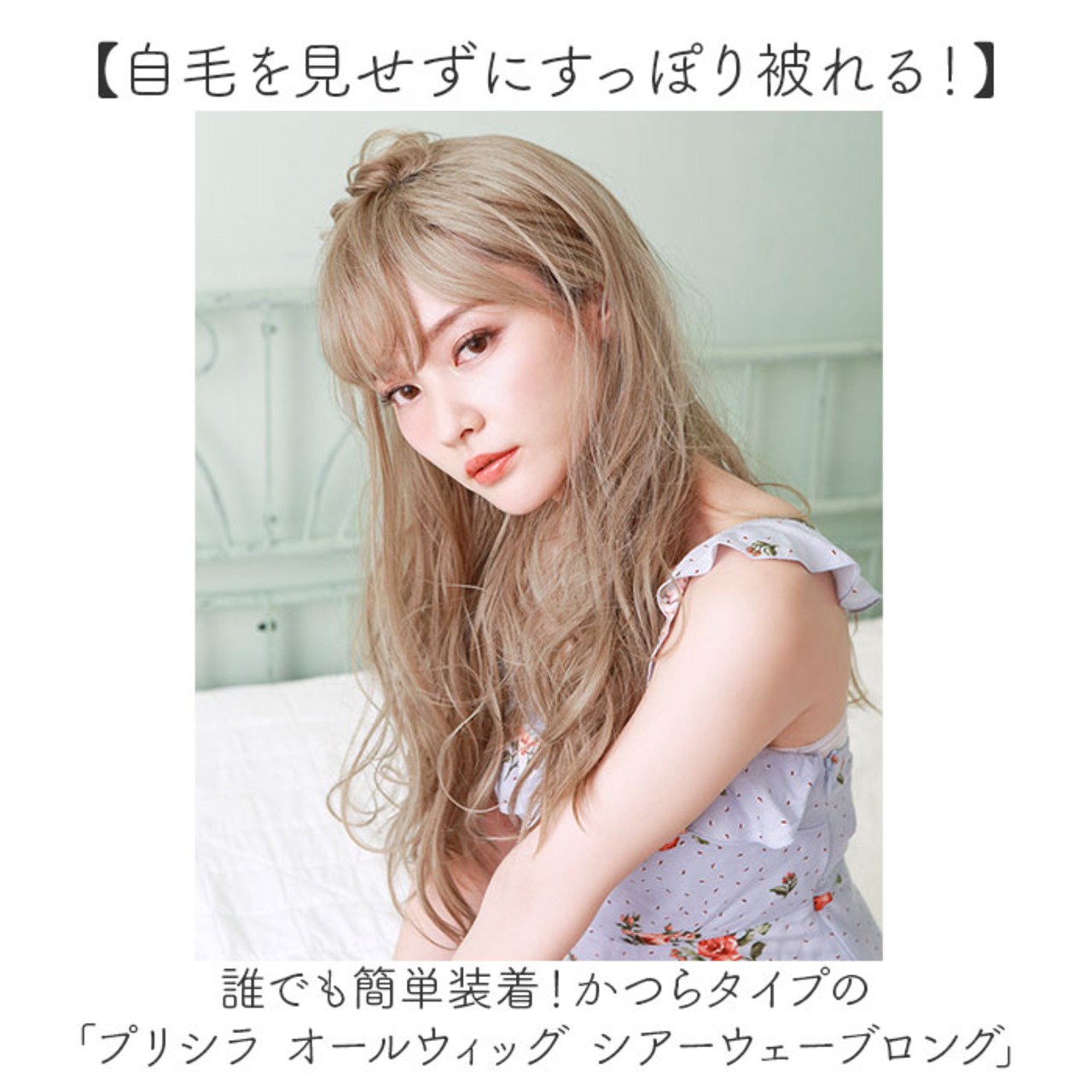 ・誰でも簡単装着!かつらタイプの「プリシラ オールウィッグ シアーウェーブロング」。