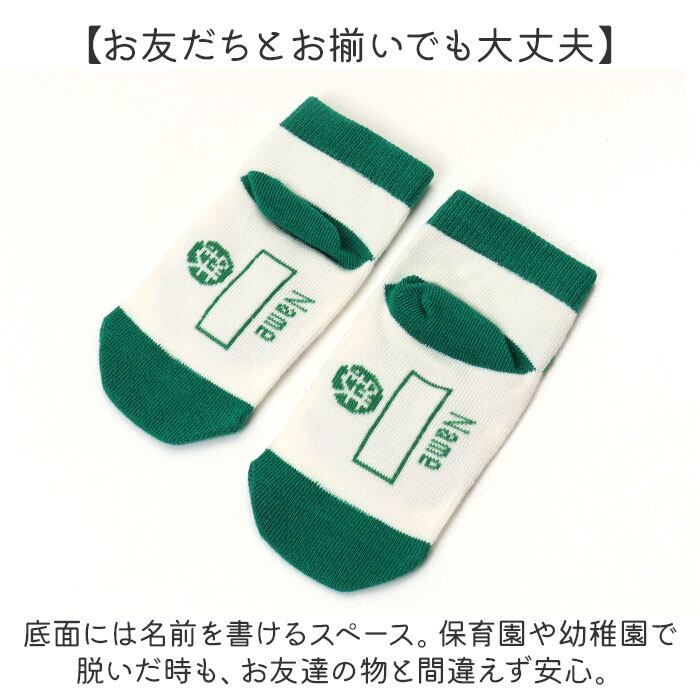 ・底面には名前を書けるスペース。保育園や幼稚園で脱いだ時も、お友達の物と間違えず安心。
