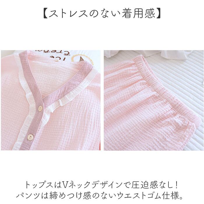 ・コットン100%のガーゼ素材を使用した、ルームウェア(セットアップ)が登場。